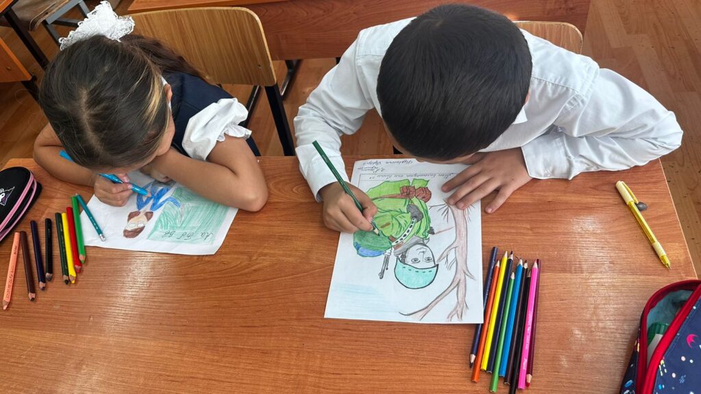 Ағымдағы жылдың 22-қыркүйегі күні жұмыс жоспарына сәйкес, мектебіміздің 3-4 сынып оқушылары арасында «Мен өскенде кім болам?», «Ата-анамның мамандығы» тақырыптарында сурет салу шарасы өтті. Әр сынып оқушылары өз сыныбы алдында салынған сурет бойынша таныстырылым жүргізіп, өзінің болашақ мамандығы, арманы туралы айтып өтті. Суреттер жинақталып, үздік деп танылған суреттер мектеп дәлізінде қабырғаға ілініп, көпшілік назарына ұсынылды.