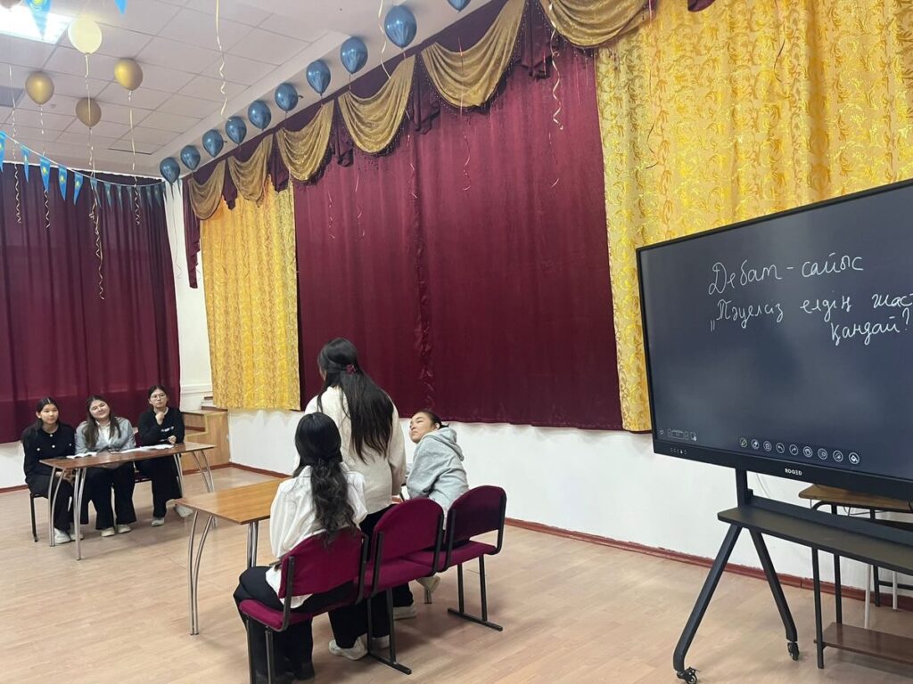 “Тәуелсіз елдің жастары қандай”? тақырыбында дебат өткізілді. Бұл шарада оқушылар өз ойларын еркін айтып, еліміздің тәуелсіздігі мен болашағы туралы пікір алмасты.